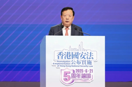 夏宝龙主任在致辞时表示,五年来的实践证明《香港国安法》是捍卫“一国两制”、维护香港繁荣稳定的“守护神”,是一部具有重大历史意义和现实意义的好法律。他强调,香港维护国家安全面临的形势仍然复杂严峻,需要牢牢把握“一国两制”下维护国家安全的实践要求,维护和巩固香港来之不易的良好局面。香港内外环境正在发生深刻变化,必须把维护国家安全贯穿“一国两制”实践的全过程,必须确保特区管治权牢牢掌握在爱国者手中,必须做到维护安全和推动发展都坚定不移,必须切实保障香港居民人权自由,必须保持香港的独特地位和优势。